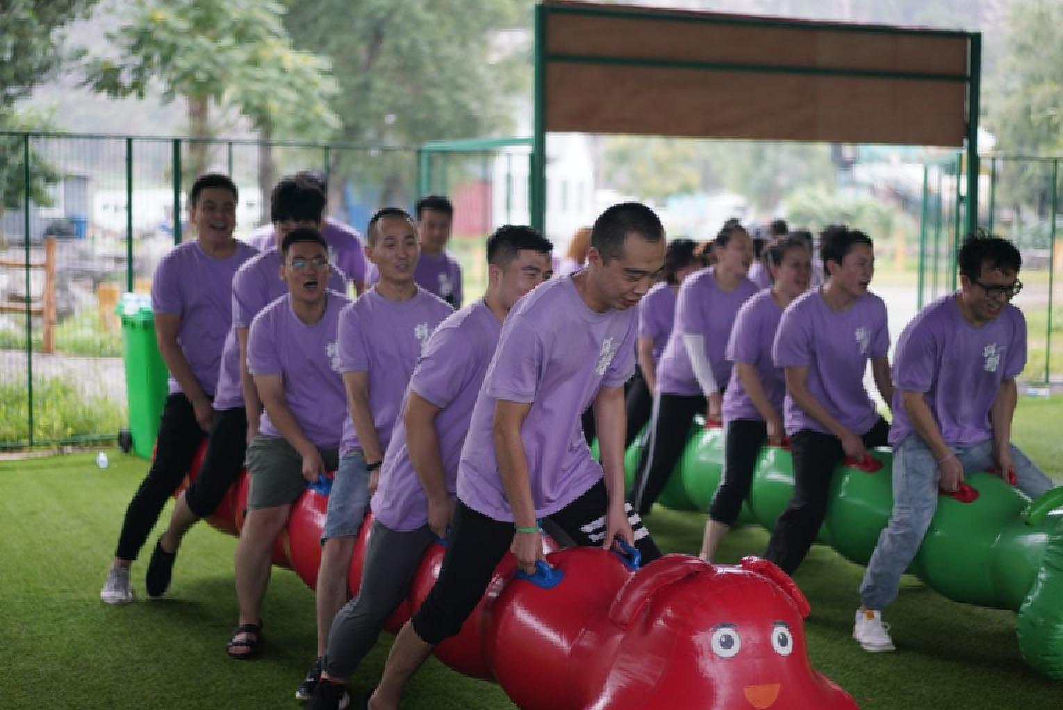 “千足毛毛虫”这个项目是考验团队配合性和协调性的经典项目,团队成员要高度配合,步调才能一致,速度才能赶超其他小组,每个人都要为了目标奋进,有一个偷懒想放弃的都不行,必须承认,这个项目对体力也是个考验。大家喊着整齐的口号,正在为荣誉而战!